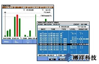 系統(tǒng)監(jiān)測器總覽屏幕可以即時查看電壓、諧波、閃變、頻率及電壓驟降和驟升的數(shù)量是否超出設置限值。 并有一個詳細列表列出了超出設置限值的所有事件。