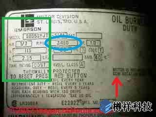 藍(lán)色橢圓形標(biāo)記電機(jī)的轉(zhuǎn)速 - 3450 RPM - 這是一個(gè)***速油燃燒器。 舊油燃燒器和設(shè)備電機(jī)以1725RPM運(yùn)行。 一些HVAC設(shè)備使用變速電動(dòng)機(jī)。