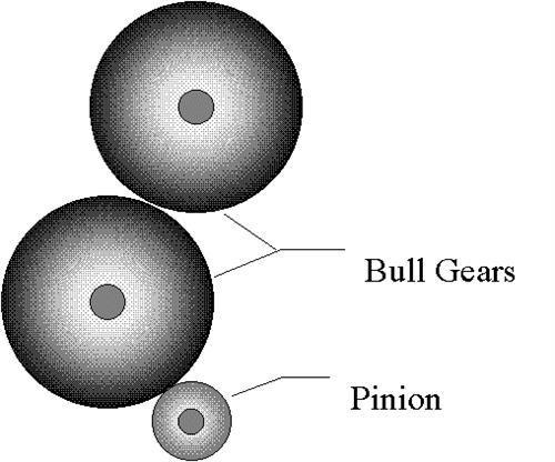 幾個月前,我被要求幫助診斷與造紙業有關的大型工廠中的可疑變速箱問題。有問題的變速箱有一個帶有23齒小齒輪的輸入軸,驅動一個帶有132個齒的大齒輪,這又可以驅動另一個相同尺寸的大齒輪。兩個齒輪連接到直徑約24英寸的大鋼輥。兩個輸出齒輪轉速為52 rpm,小齒輪轉速為302 rpm(見圖1)。